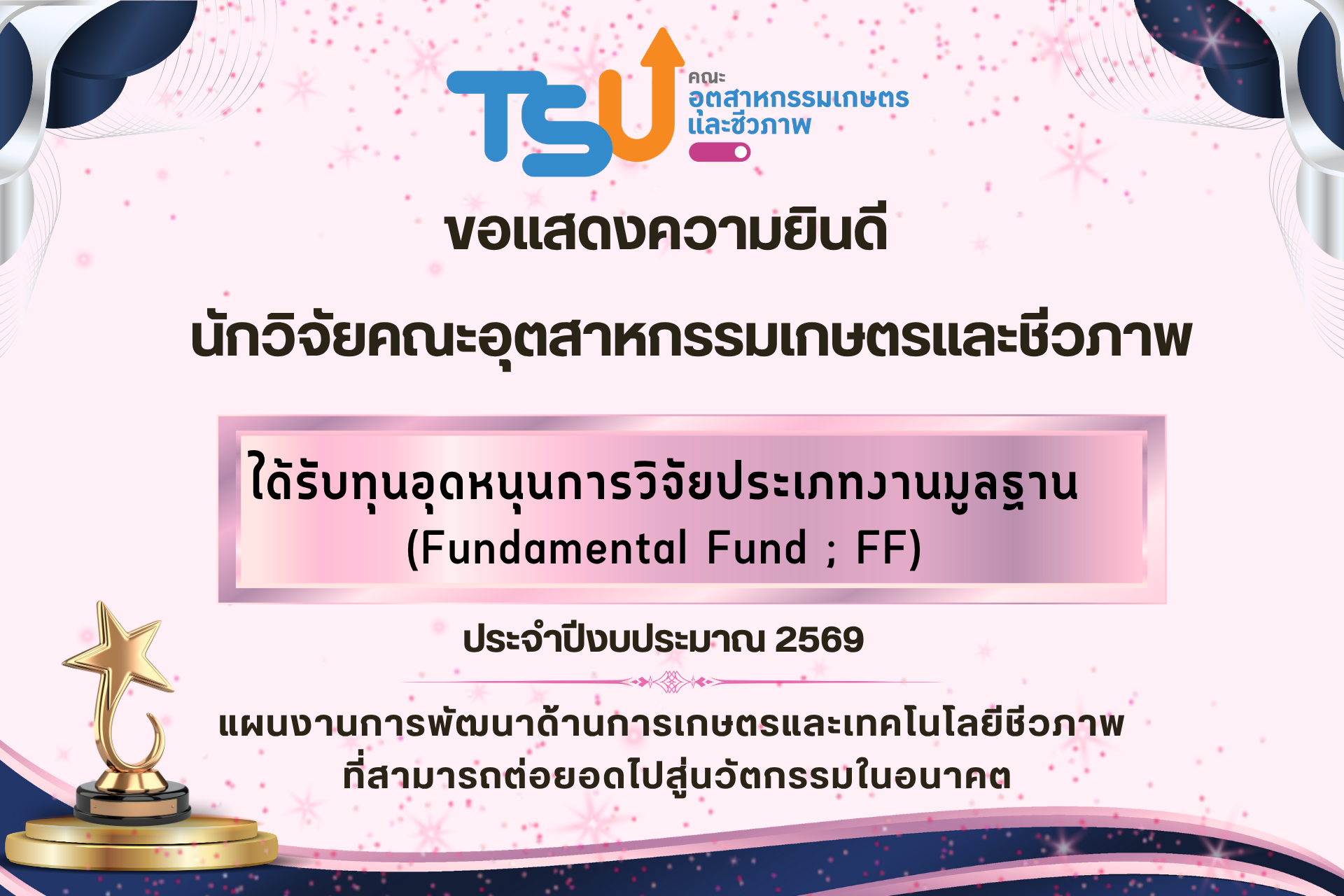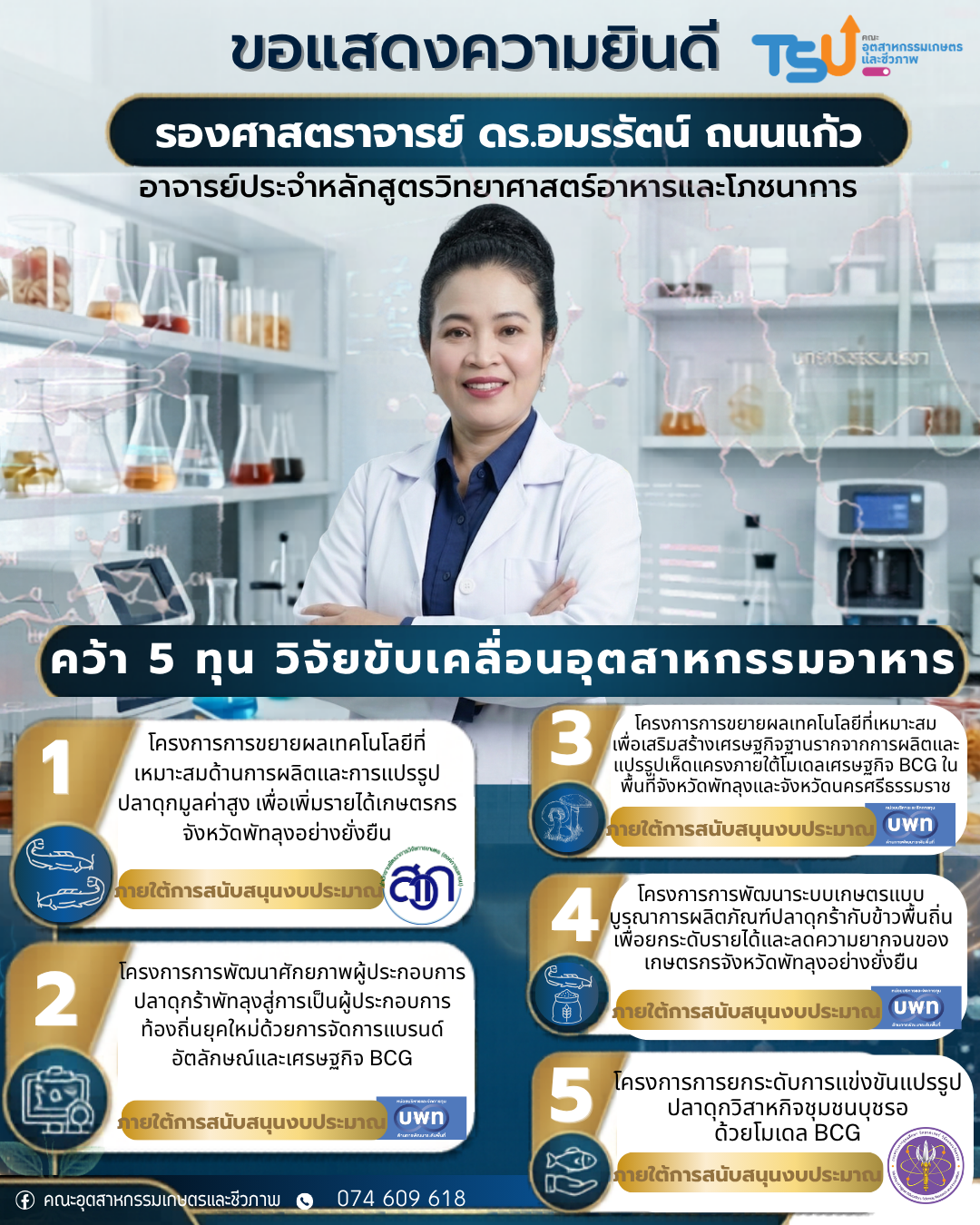 คณะอุตสาหกรรมเกษตรและชีวภาพ มหาวิทยาลัยทักษิณ เป็นคณะคณะชั้นนำด้านการสร้างนวัตกรรมอุตสาหกรรมเกษตรเพื่อชุมชน ภายในปี 2570