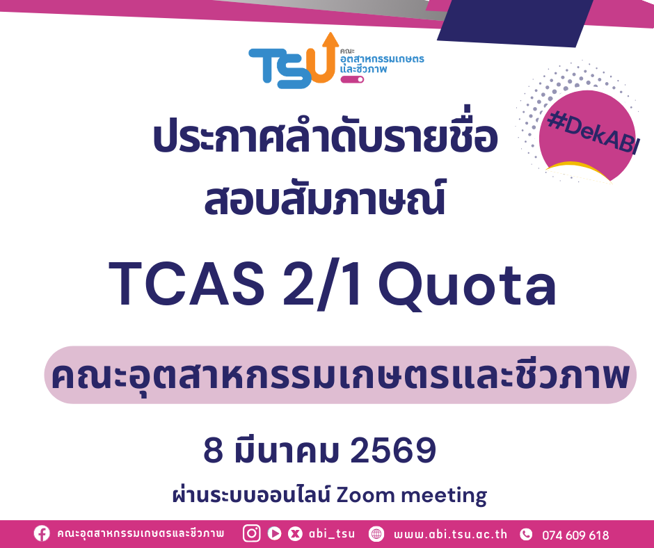 สมัครตรงของคณะและตรวจสอบรายละเอียดเพิ่มเติมได้ที่ >> https://admission.abi.tsu.ac.th/